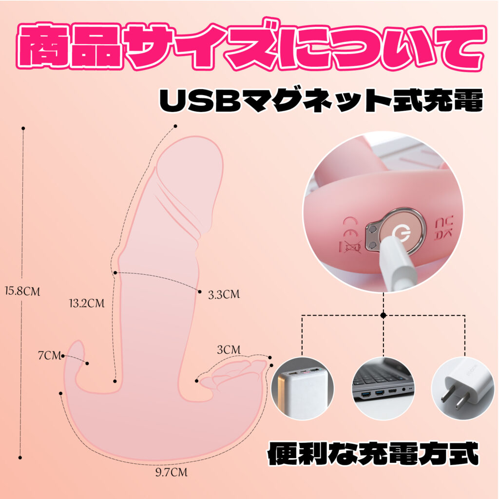 肌触りの良い高品質な固体シリコン素材を使用してますので安心してお使いいただけます。 - 便利なUSB充電式